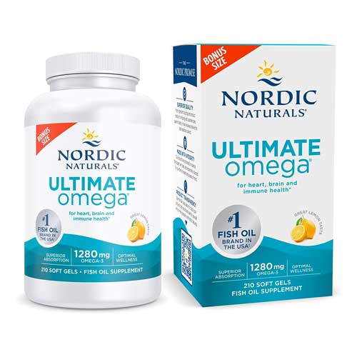 Each serving of fish oil offers 1280mg of omega 3 for optimal wellness. Nordic Naturals Ultimate Omega, Lemon Flavor also claims to have superior absorption.